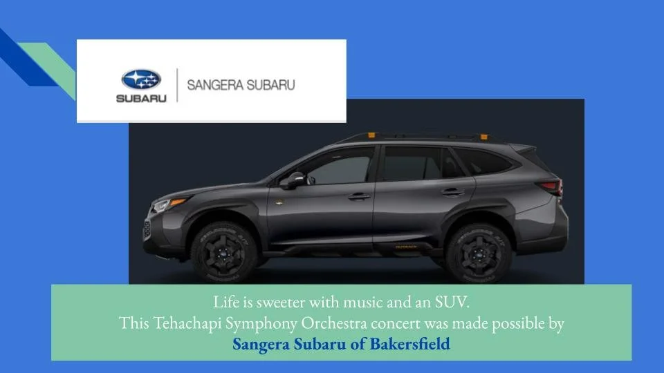 The Tehachapi Symphony is grateful to the community businesses and entities that support the orchestra allowing us to make concerts free to the public. If you would like to support the orchestra please reach out to us at tsoconnection@gmail.com so that we can advertize your business at our concerts.